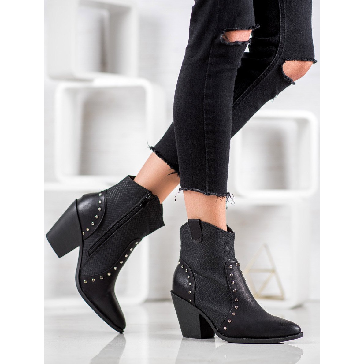 Wir präsentieren warme Cowboystiefel mit hohem Absatz von Small Swan – perfekte Schuhe für Frauen, die Wert auf Stil und Komfort legen. Diese eleganten Stiefeletten in klassischem Schwarz sind die perfekte Wahl für die Herbst-/Wintersaison. Das knöchellange Obermaterial besteht aus hochwertigem Faux-Wildleder und verleiht jedem Styling Charakter.