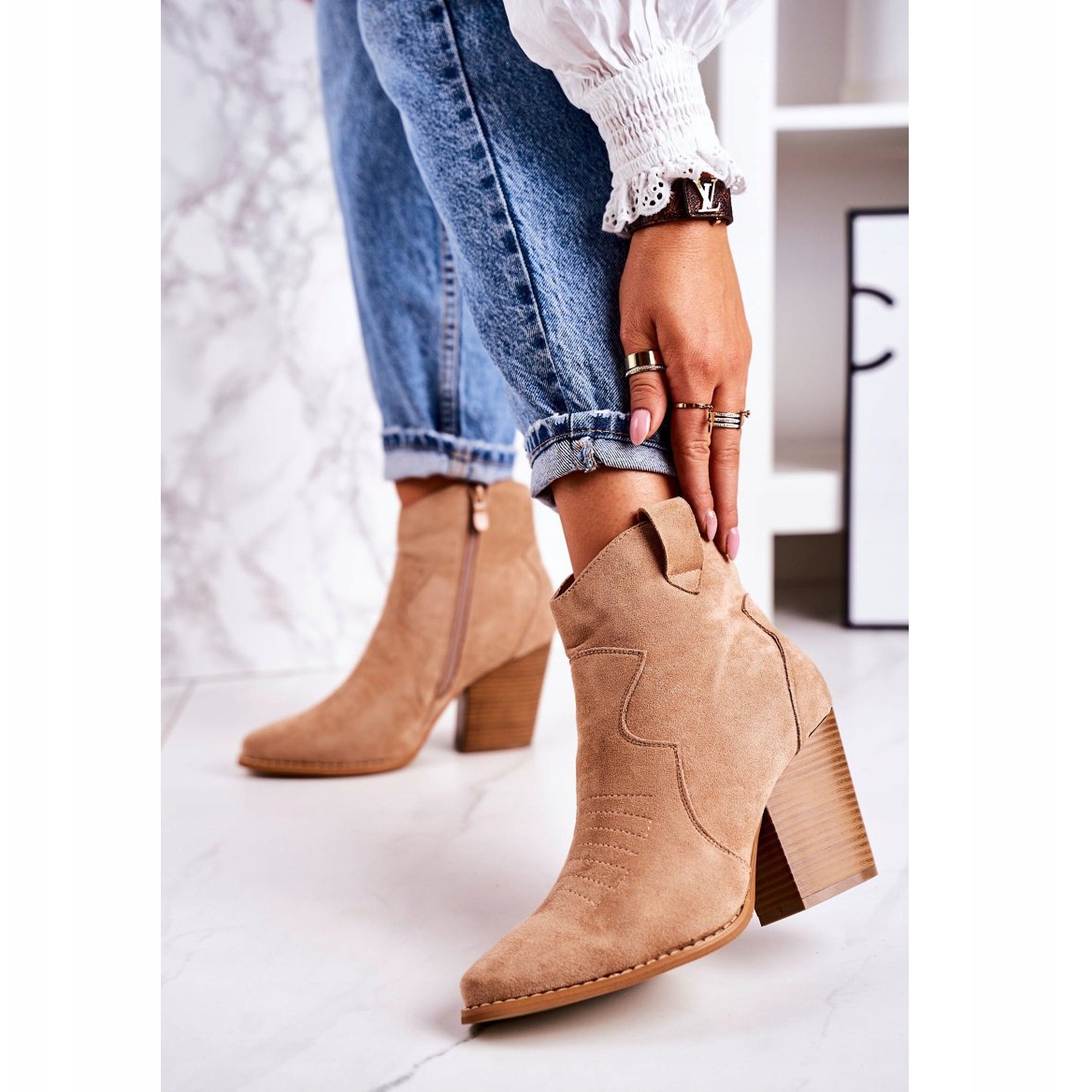 Details: MSMG Warme Cowboystiefel für Damen mit Absatz Beige Margaret
