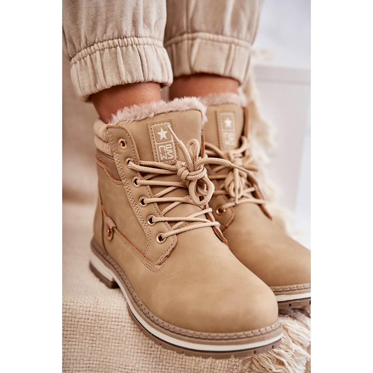 Details: PE1 Warme Damenstiefel Trappers Dunkelbeige Liv