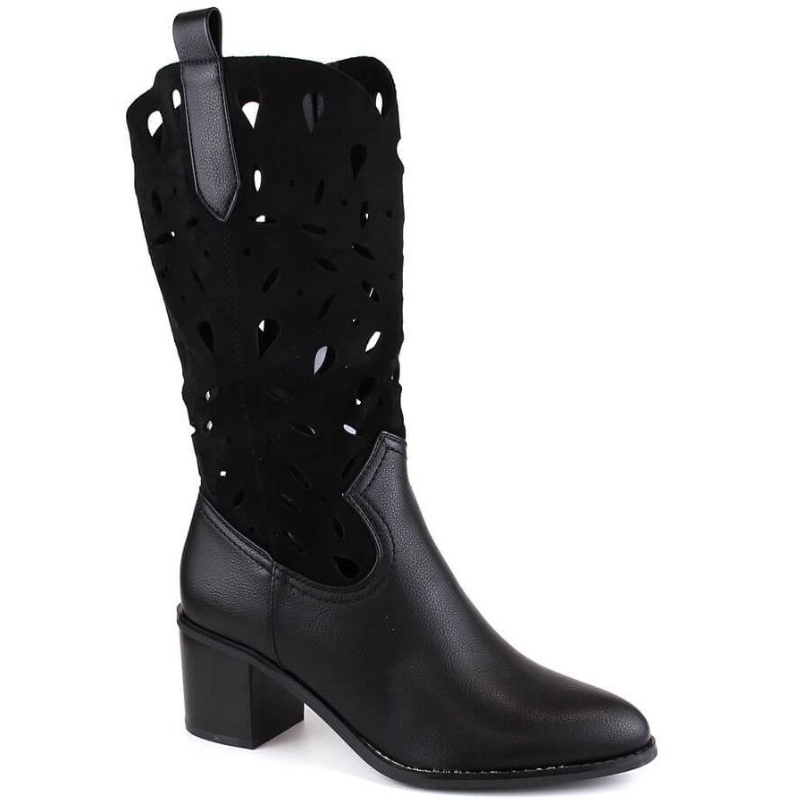 Details: M. DASZYŃSKI Warme, durchbrochene Cowboystiefel für Damen, schwarz M.Daszyński MR2337-3