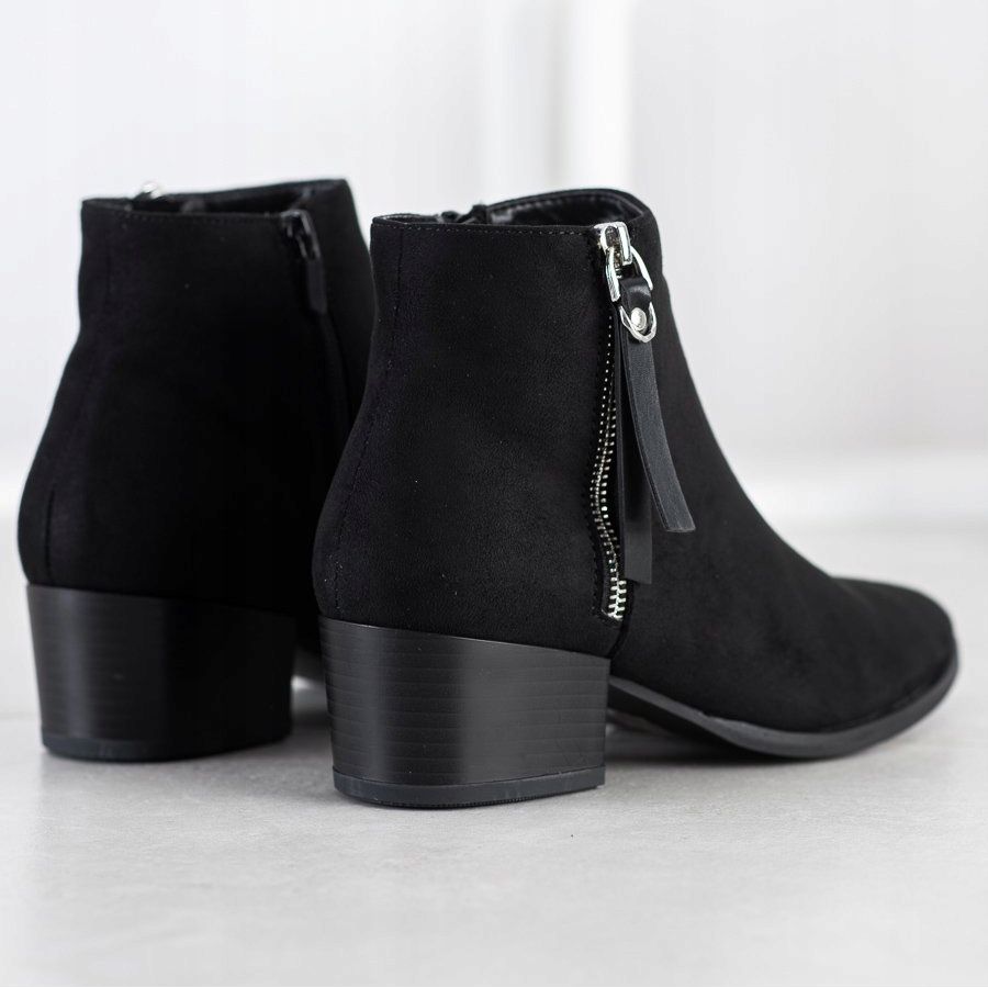 Warme, lässige schwarze Stiefeletten der Marke Evento sind die perfekte Wahl für eine moderne Frau, die sowohl Wert auf Komfort als auch auf Stil legt. Diese eleganten Stiefel sind aus hochwertigem ökologischem Leder im Wildlederimitat gefertigt, was ihnen ein außergewöhnlich attraktives Aussehen verleiht. Dank ihrer klassischen schwarzen Farbe passen sie zu vielen Stilrichtungen, sowohl für den Alltag als auch für formelle Anlässe.