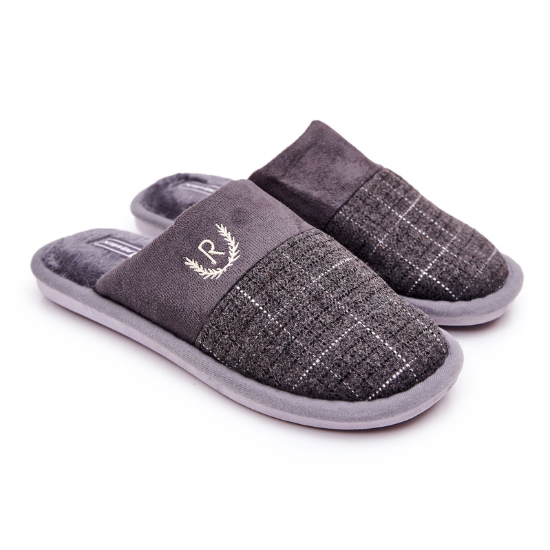 Details: WJ1 Warme graue karierte Hausschuhe von Blase