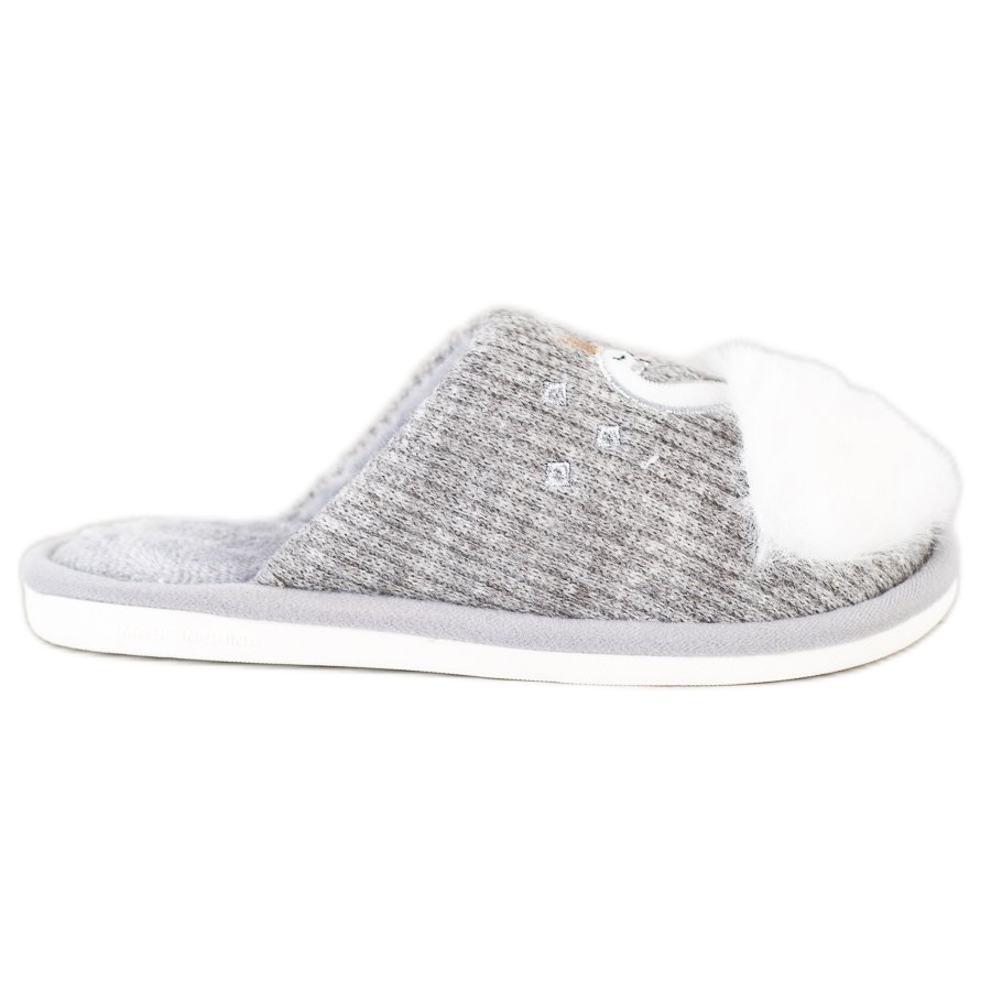 Bona Bona Warme Hausschuhe mit Applikation weiß grau