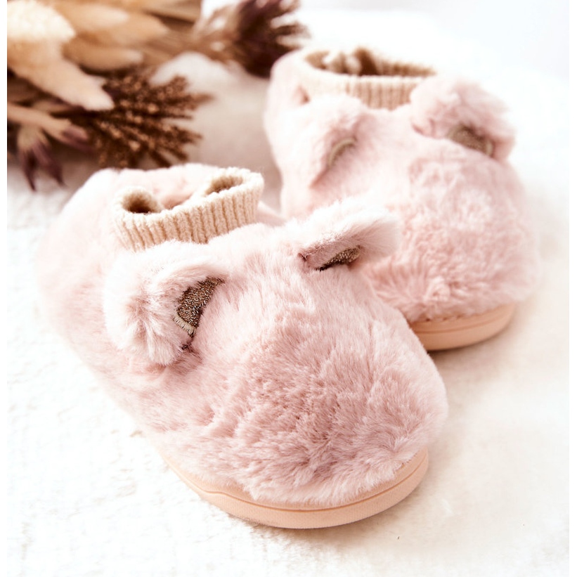 Delikate, isoliertes Papcie Dessi - perfekt für coole Wintertage. Sie bestehen aus weichem, pelzigem Material, das sich angenehm angenehm angeht, und bieten den ganzen Tag über Wärme und Komfort. Auf der Vorderseite fügen dekorative Ohren mit glänzendem Faden Charme hinzu, und die praktische Kette ermöglicht es dem Oberbein, das Bein des Beins zu passen, dank der die Papiere besser an den Füßen haften.