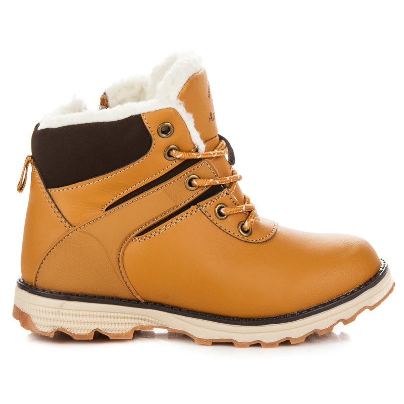 Perfekt für kältere Tage: Kinderwanderstiefel aus ökologischem Leder, isoliert mit einem weichen Schaffellmantel. Das klassische Finish in Braun und Beige mit einem dunkleren Einsatz an der Oberseite verleiht ihnen einen universellen, lässigen Charakter – perfekt für den täglichen Gebrauch in der Herbst-/Wintersaison.