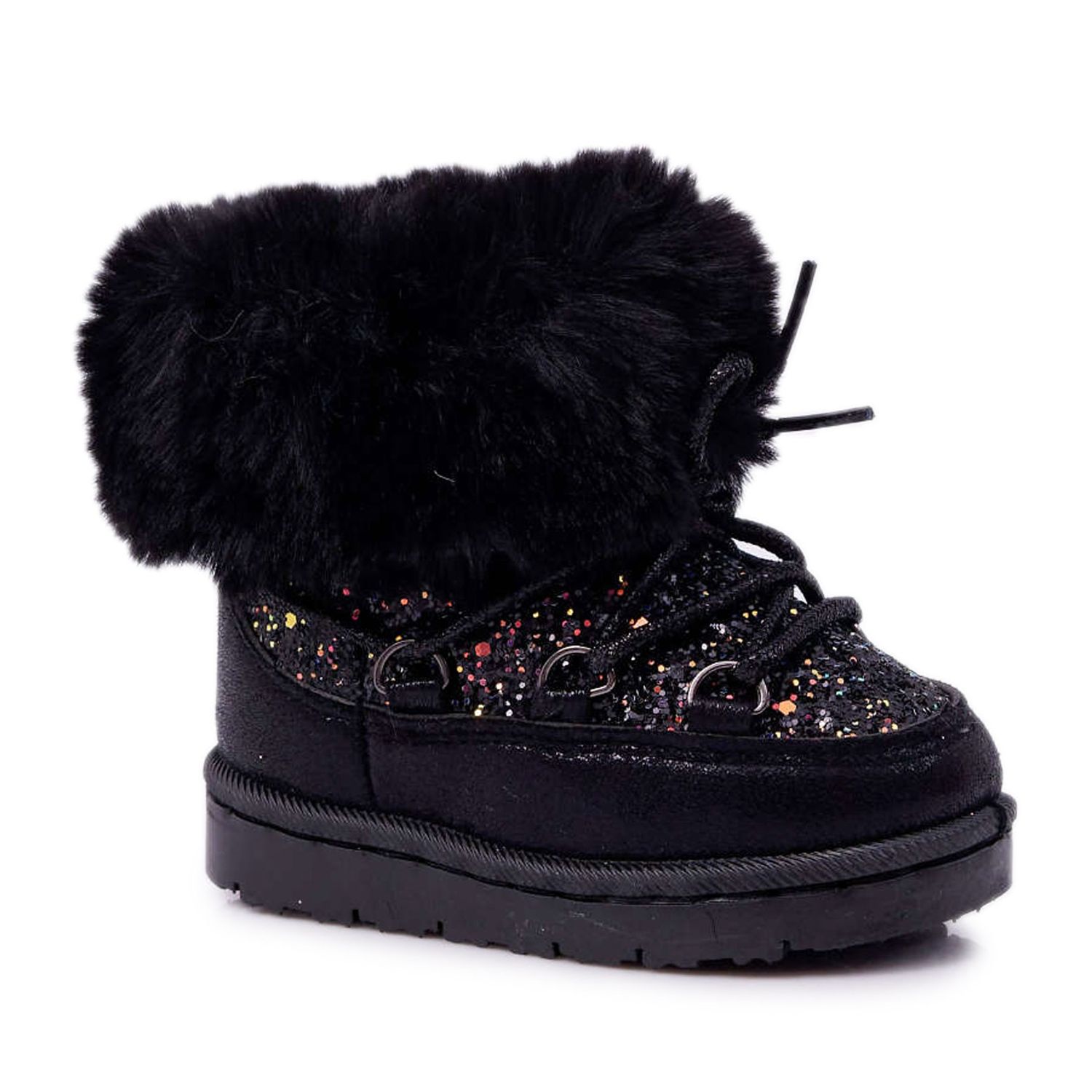 Details: FRROCK Warme Kinder Schneestiefel mit Fell Black Crystal Fox schwarz