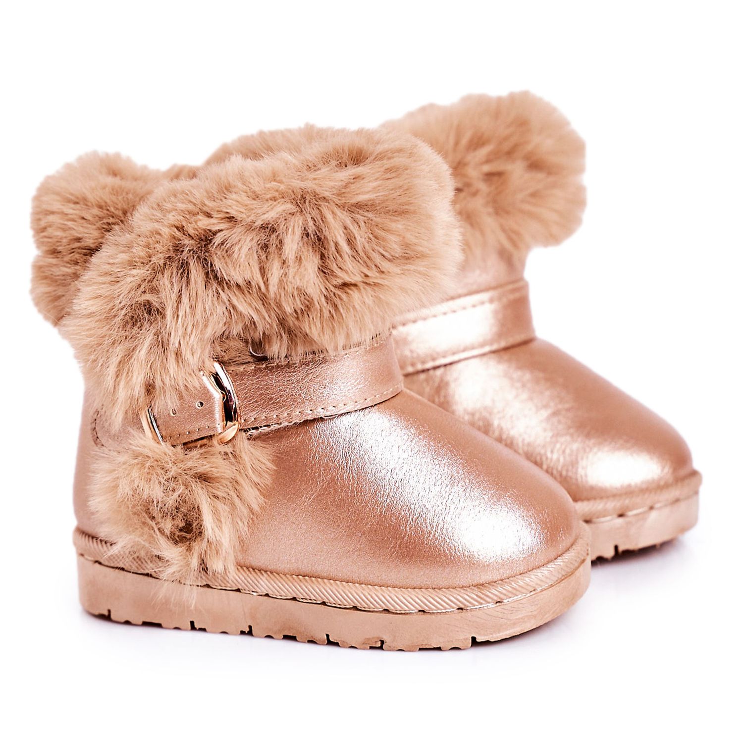 Details: FRROCK Warme Kinder-Schneestiefel mit Fell Roségold JellyBeans rosa