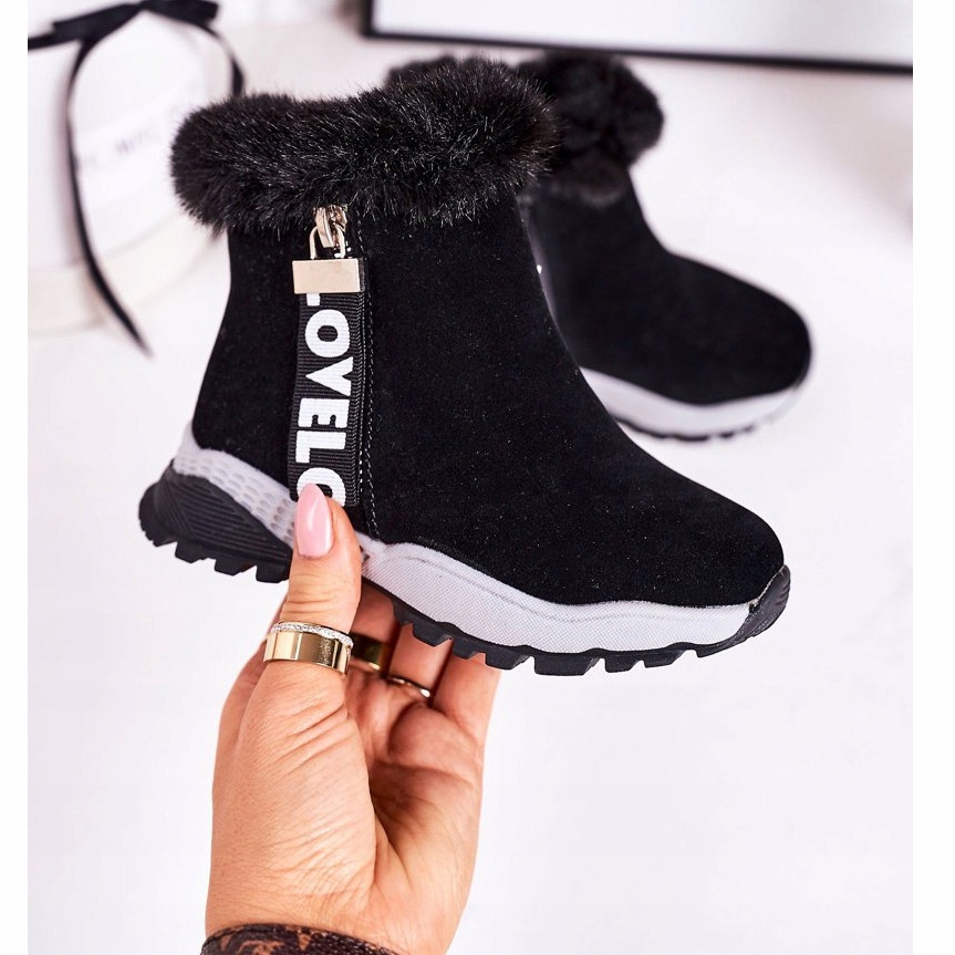 Details: Linshi Warme Kinder-Schneestiefel mit Fell Schwarz Love-Love