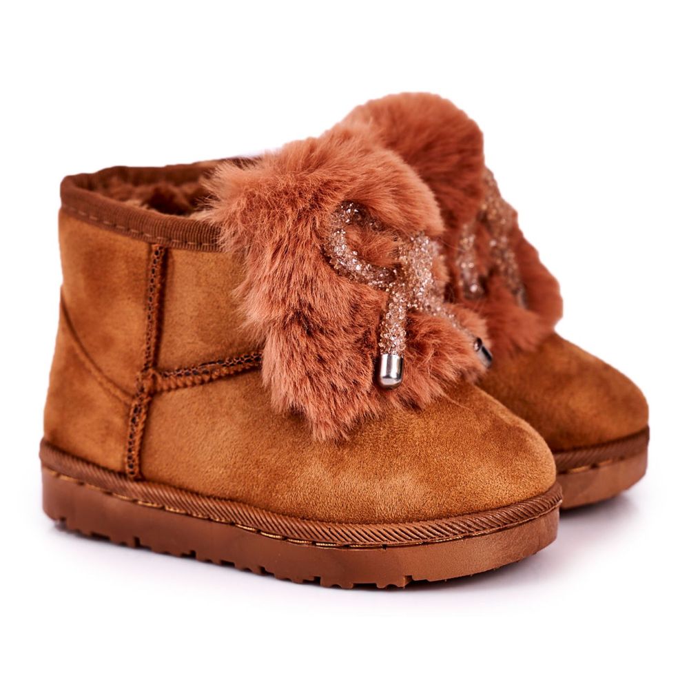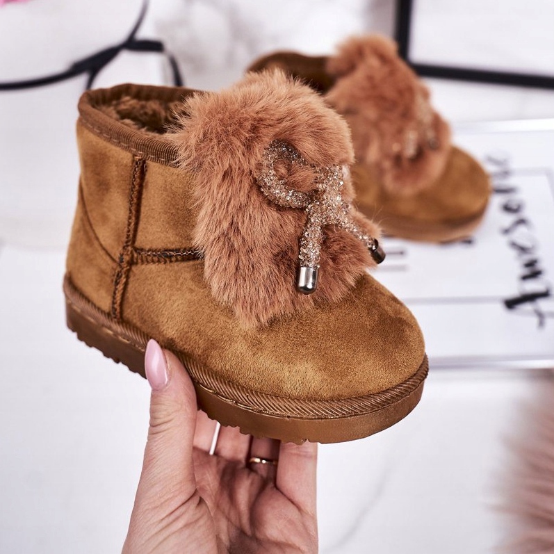 Inna marka Warme Kinder-Schneestiefel mit Fell Wildleder Karamell Amelia braun
