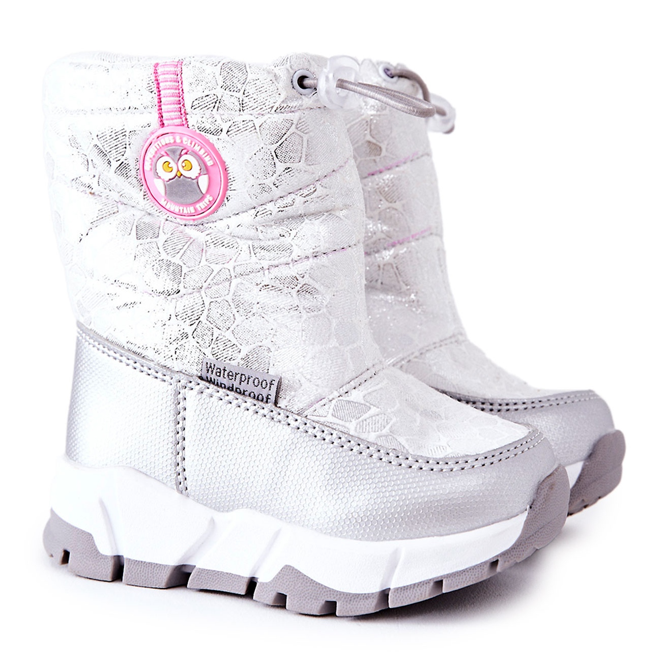 Details: PJ2 Warme Kinder-Schneestiefel mit Reißverschluss Silber-Weiß Laoth