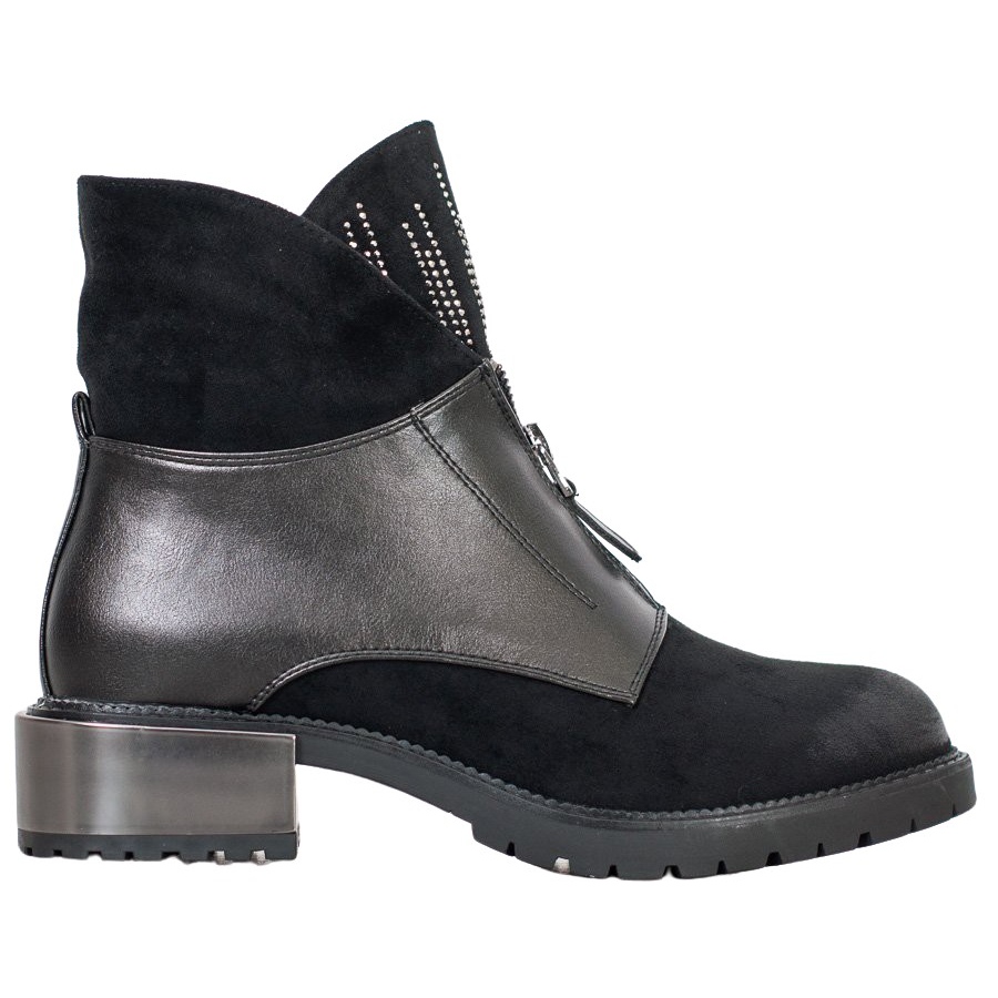 Es ist unmöglich, das auffällige Detail zu erwähnen: Elegante Kristalle und silberne Jet-Verzierungen schmücken zart das Obermaterial und verleihen den Schuhen einen einzigartigen Glanz. Diese Elemente machen Stiefeletten zu einem wichtigen Akzent sowohl in alltäglichen als auch in anspruchsvolleren Kombinationen.