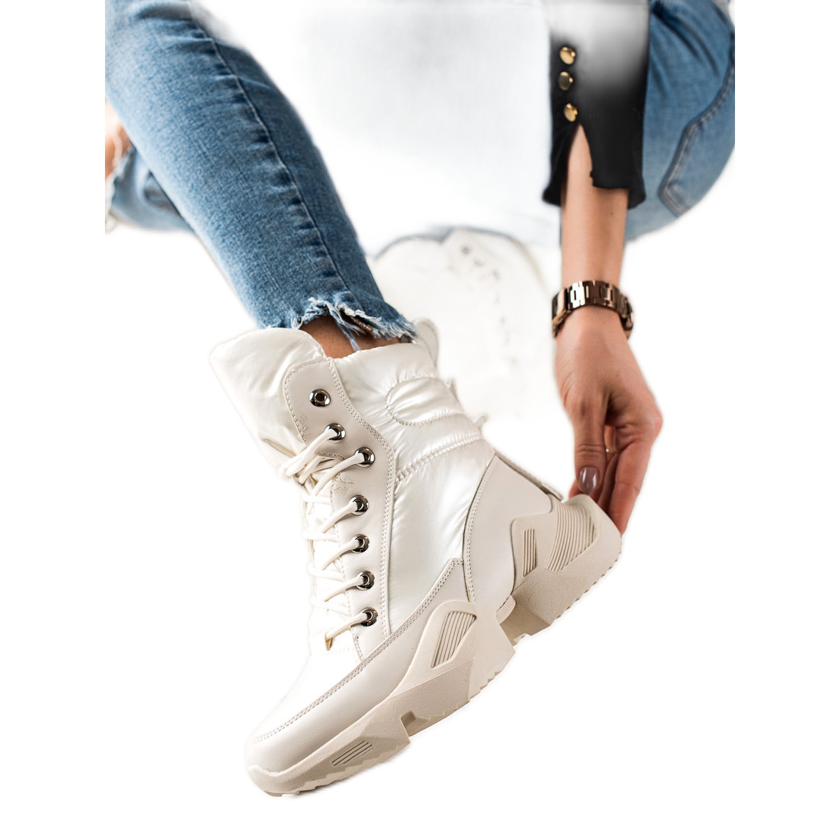 Der Reißverschluss und die Schnürdetails erleichtern das Anziehen und die Plateauhöhe von 4,5 cm sorgt für einen dezenten Charme. Verpackt im Originalkarton des Herstellers eignen sich diese Schneestiefel perfekt als Geschenk.
