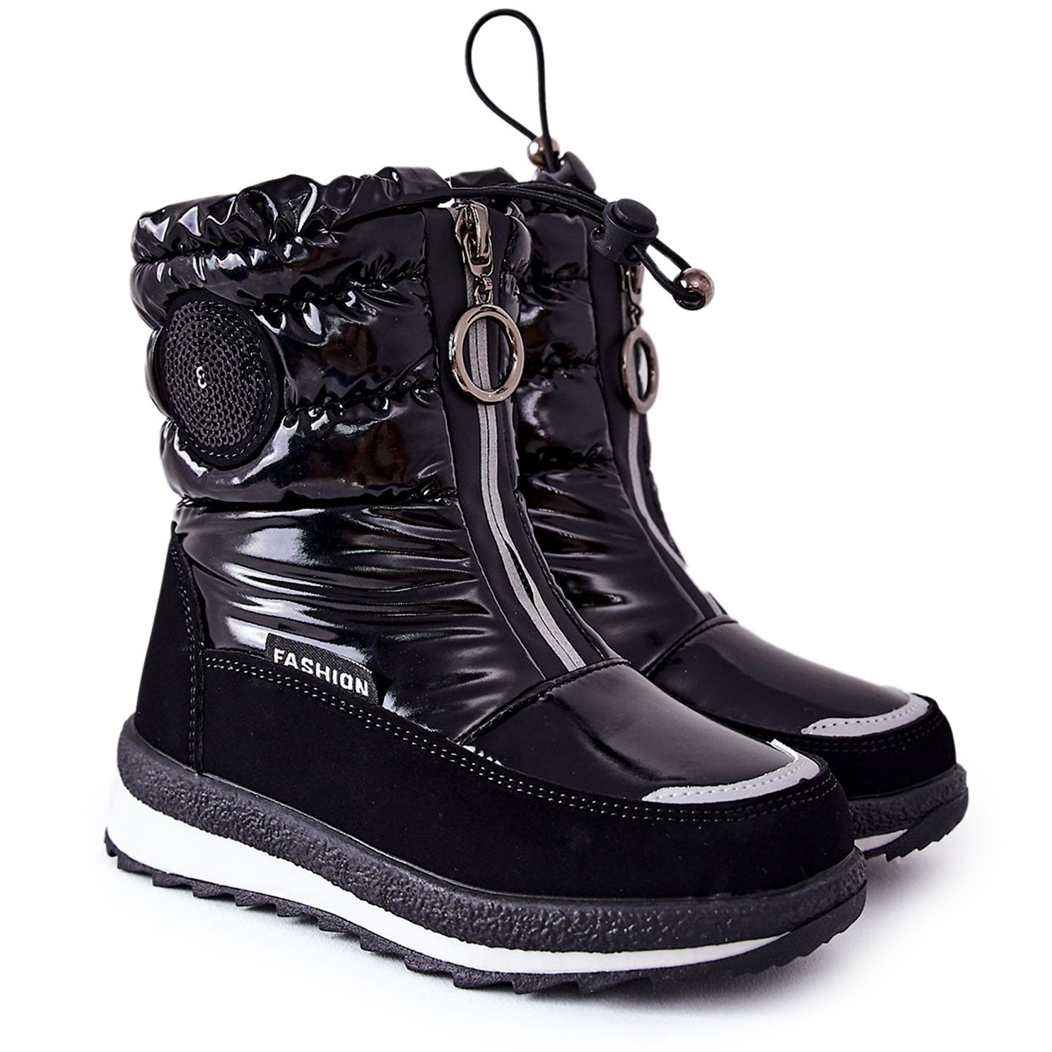 Warme und praktische Schneestiefel für Mädchen, perfekt für kühle, feuchte Tage. Der äußere Teil aus Faux-Wildleder und haltbarem Stoff bietet Schutz vor Benetzung, und die vollständige Isolierung mit natürlicher Wolle garantiert den thermischen Komfort. Der Schieberegler erleichtert das Anziehen und nach seiner Ausbreitung erweitert sich das Obere - außerdem ermöglicht die obere Kette den Schuh an das Bein, die Schnee und Kälte einschränken.