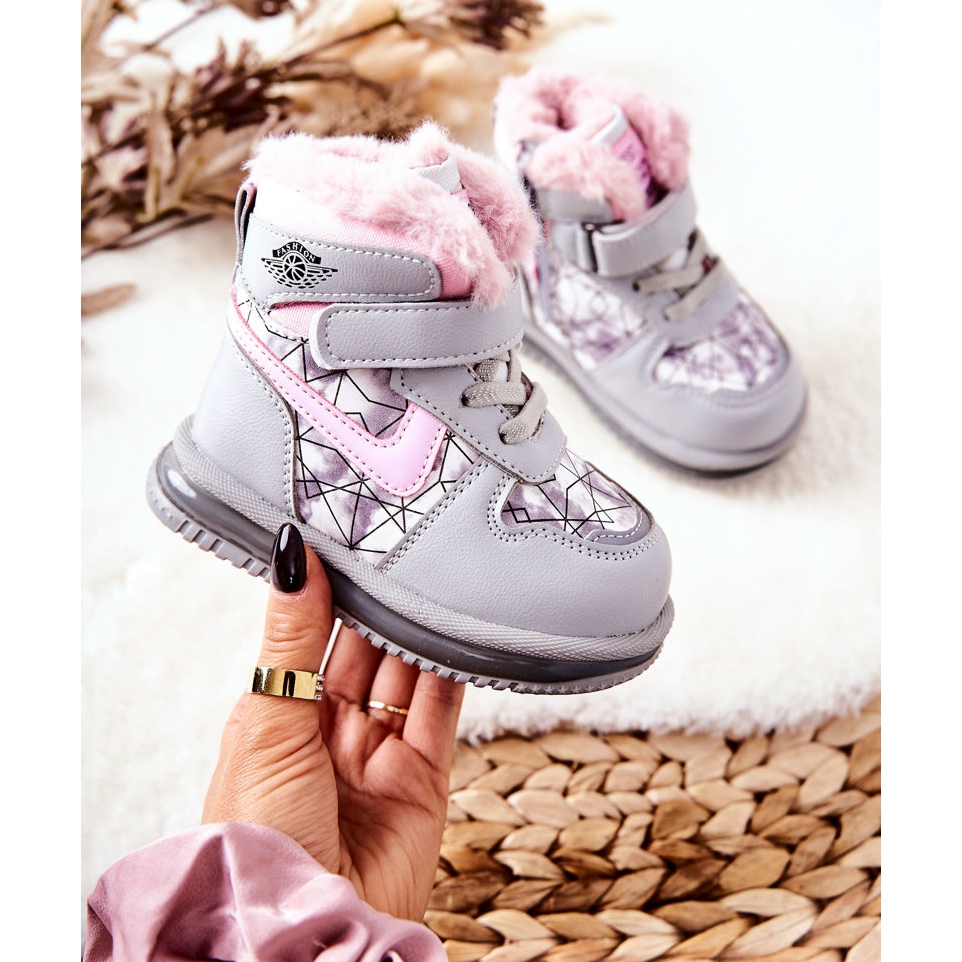 Details: PJ2 Warme Schneestiefel für Kinder Grau und Rosa Shirinell