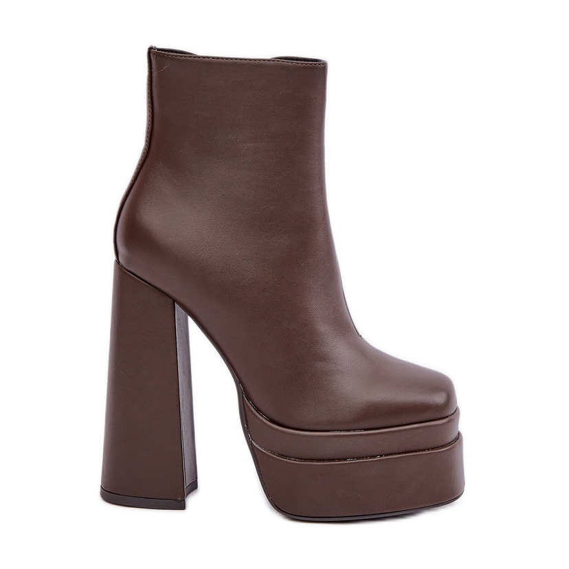 Inna marka Warme Schoko-Stiefeletten auf massivem Plateau und hohem Absatz braun