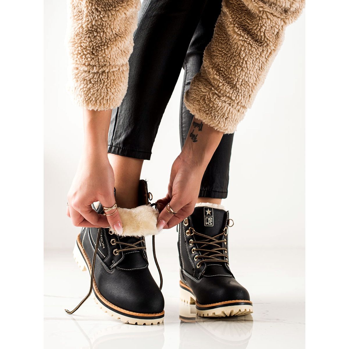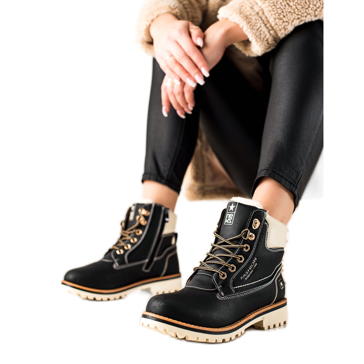 Diese Stiefel sind in der klassischen schwarzen Farbe erhältlich, was sie zu einer universellen Ergänzung für jedes Styling macht. Egal, ob Sie sie mit Jeans, einem Rock oder Leggings kombinieren, Sie werden immer modisch und stilvoll aussehen. Der Reißverschluss und die Möglichkeit der Schnürung ermöglichen eine einfache Anpassung an den Fuß, was sie noch funktionaler macht.