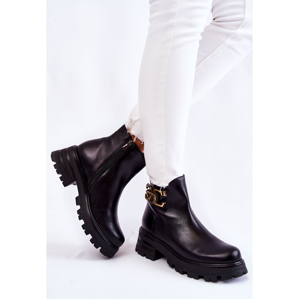 Klassische und modische Frauenstiefel aus natürliches Leder - perfekt für kühlere Tage. Das Modell ist in eine stabile, flache Ferse (6 cm) und eine Plattform (3,5 cm) eingebettet, die auch beim längeren Tragen Komfort gewährleisten. In der Innenseite gibt es eine Isolierung in Form einer weichen Schuhdecke und einer versteiften Ferse, die zusätzliche Wärme und Stabilisierung des Fußes verleiht. Eine stilvolle Kette am oberen Förderung fügt Charakter hinzu und macht Stiefel sowohl für alltägliche als auch für mehr Ausgangsstilisationen hervorragend.