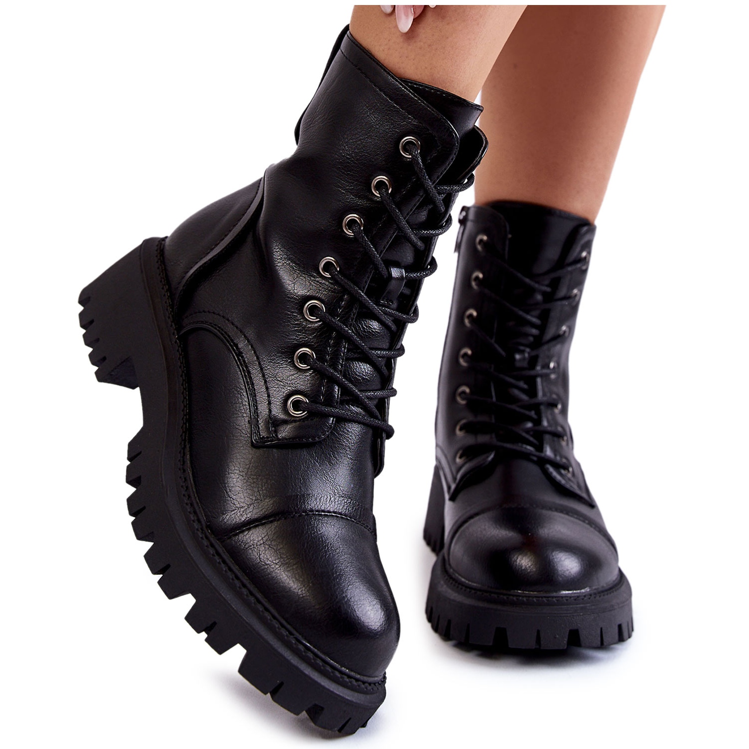 Klassische, stilvolle La.fi -Stiefel in elegantem Schwarz, bestehend aus hochwertigem ökologischem Leder. Das Modell kombiniert einen traditionellen Look mit praktischen Lösungen - Schnürung vorne und einen bequemen Reißverschluss auf der Seite erleichtern das Anziehen. Die versteifte Ferse sorgt für die Stabilität, und die Sohle garantiert eine gute Haftung auf Herbst- und Winteroberflächen. Das mit weiche Fell isolierte Innenraum - perfekt für kühlere Tage.