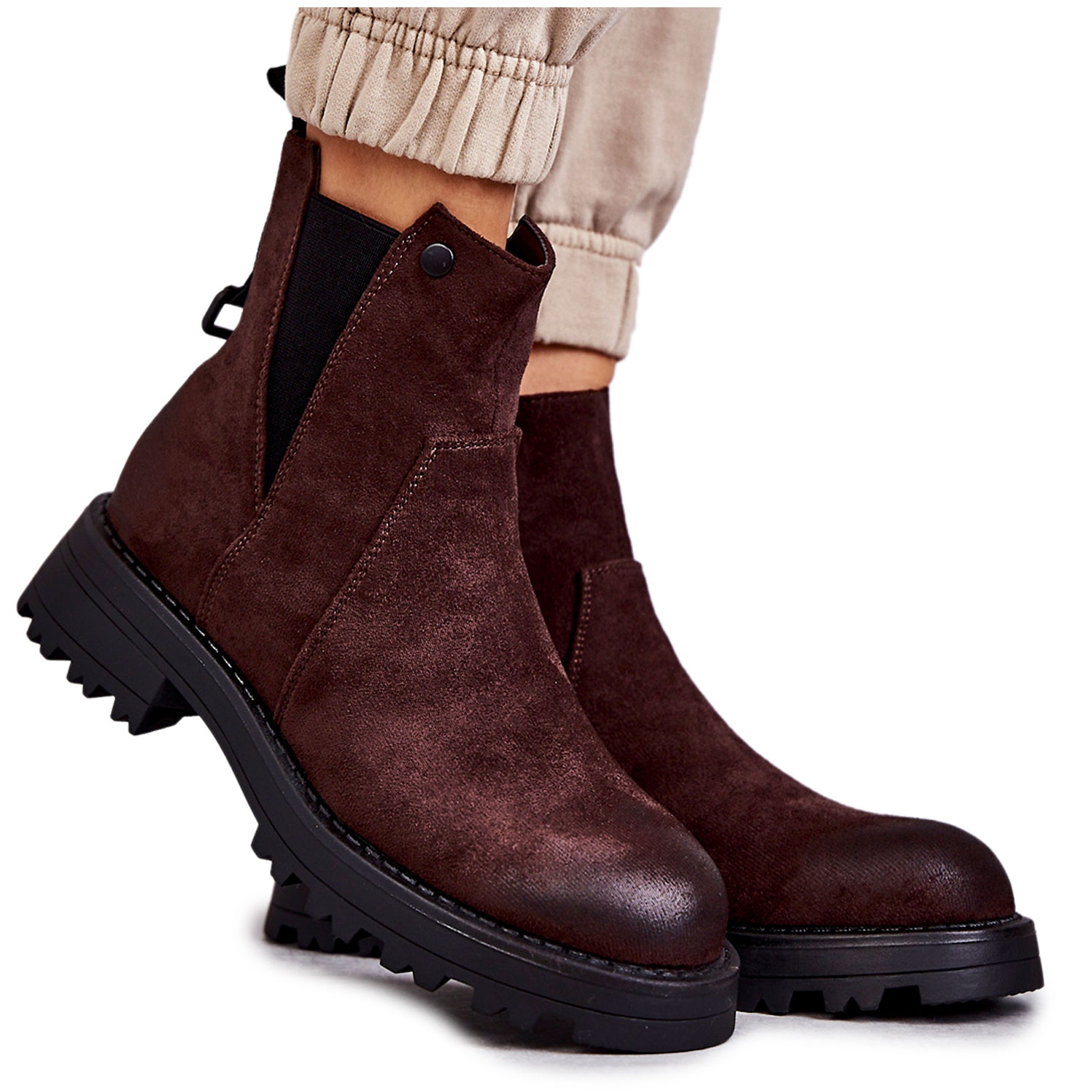 Entdecken Sie die einzigartigen PJ1-Stiefel – isolierte Arbeiterstiefel aus Wildleder mit flachem Absatz in einem wunderschönen Braunton, die perfekt zu den neuesten Trends passen! Dies sind klassische Damenstiefeletten, die diesen Herbst ein Muss sind. Ihr elegantes Design wird durch eine dezente Verzierung mit einer Aufschrift auf der Rückseite bereichert, die Aufmerksamkeit erregt und jedem Styling Charakter verleiht.