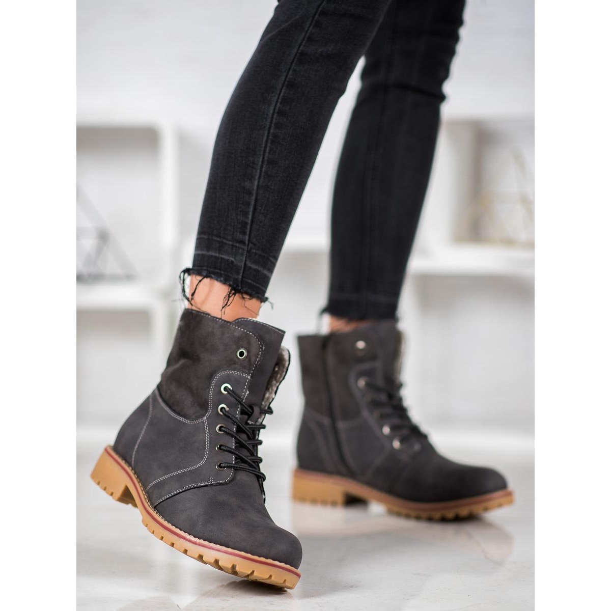 Entdecken Sie außergewöhnlichen Komfort und attraktives Aussehen dank der warmen Super Me-Stiefel in der modischen grauen Farbe! Diese Damenstiefel sind die perfekte Kombination aus Eleganz und Komfort und passen gut zu jedem Herbst- und Winter-Styling.