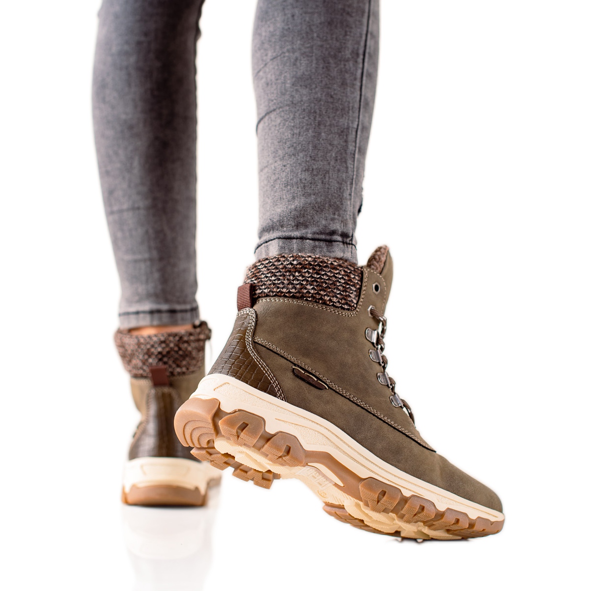 Trapper-Stiefel zeichnen sich durch einen lässigen, sportlichen Stil aus, perfekt für den täglichen Gebrauch. Ihre universellen Farben – tiefes Braun und gedämpftes Grün – passen perfekt zu einer Vielzahl von Outfits, von Jeans bis hin zu Röcken. Eine weiche, eingearbeitete Fersenkappe und eine runde Spitze sorgen für Tragekomfort und die Isolierung hält Ihre Füße auch an den kältesten Tagen warm.