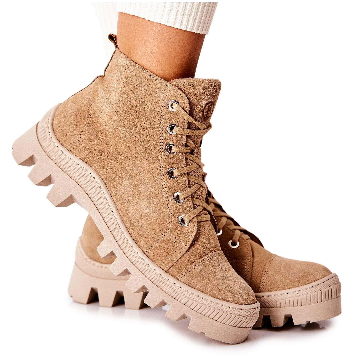 Dank der Schnürung lassen sich diese Stiefel einfach an die Beinweite anpassen, was für zusätzlichen Tragekomfort sorgt. Im Inneren befindet sich eine Isolierung in Form einer Schuhdecke und einer steifen Ferse, die den ganzen Tag über Komfort ermöglicht. Ihre universelle beige Farbe passt perfekt zu verschiedenen Stilen und verleiht ihnen einen einzigartigen Charme.