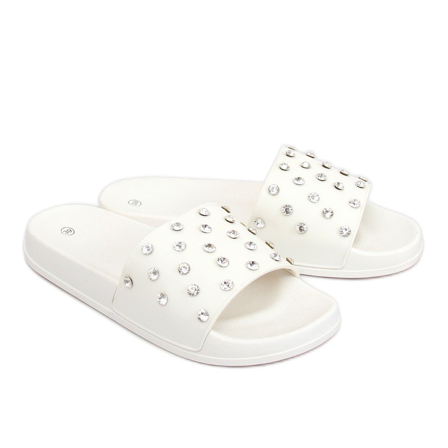 Inna marka Weiß CK67P Weiße Hausschuhe mit Steinen