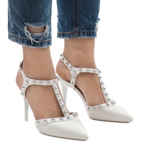 **Weiße Lack-Stilettos mit Nieten B-57**
