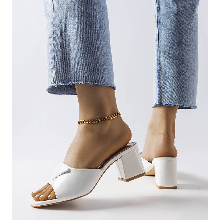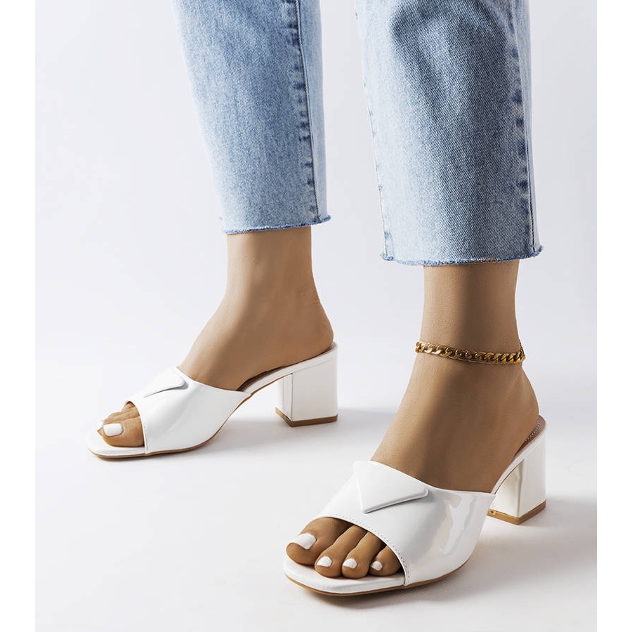 Lernen Sie die weißen Lack-Pantoletten von Branch mit hohen Absätzen kennen – ein Must-Have für jede modebewusste Frau, die Eleganz und Komfort für Sommertage sucht. Diese stilvollen zehenstegsandalen sind eine Kombination aus modernem Design und Funktionalität. Aus ökologischem Leder gefertigt, mit auffälligem Lack überzogen, ziehen sie die Blicke auf sich und verleihen jedem Styling Frische.