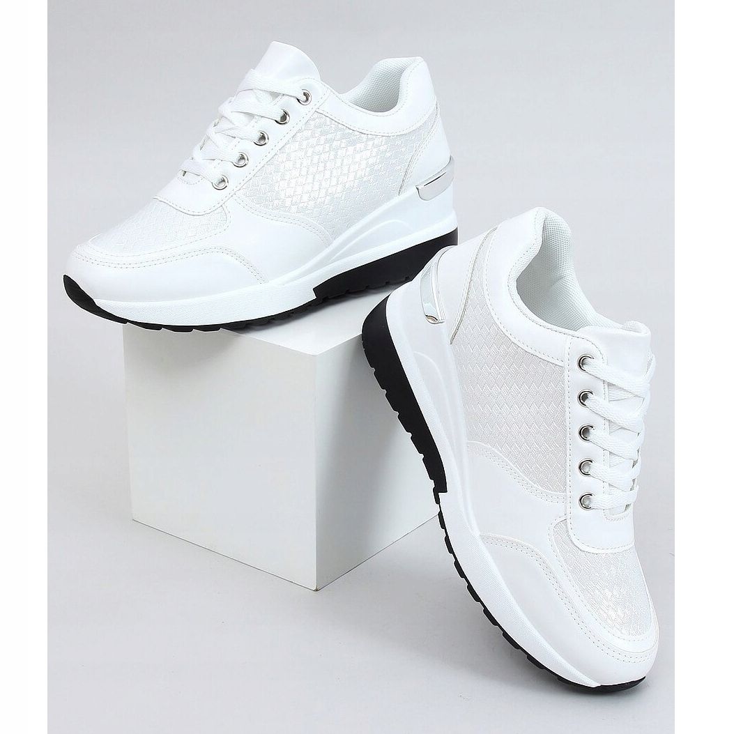 Inna marka Weiß MY-2717 Weiße Sportschuhe auf einem versteckten Keilabsatz