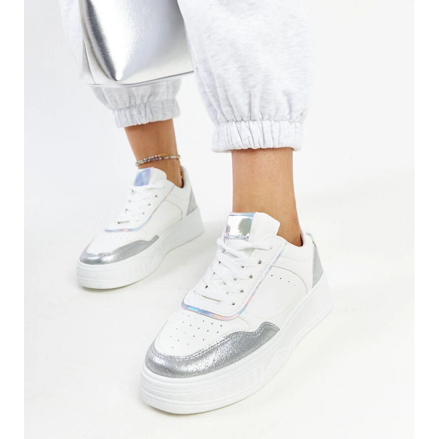 Inna marka Weiß-silberne Sneaker mit dicker Rumai-Sohle