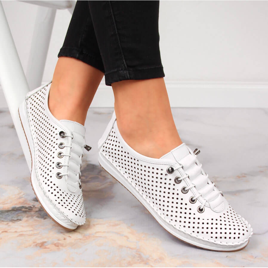 Details: Weiße Artiker Damenschuhe aus durchbrochenem Leder