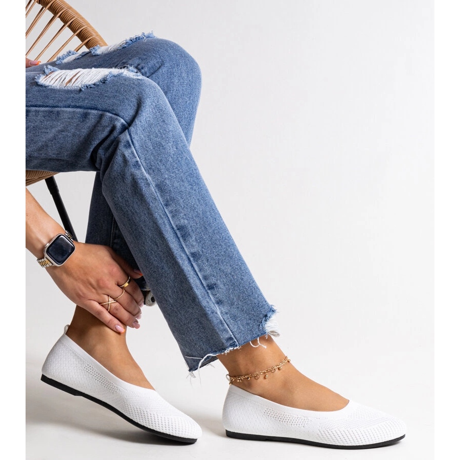 Entdecken Sie die perfekten Schuhe für Sommertage - weißes Material Ballerinas Yafia! Diese stilvollen und komfortablen Ballerinas sind in jeder Sommergarderobe müssen. Mit ihrer niedrigen, abgerundeten Zehen und ihrer flachen Sohle bieten sie nicht nur einen modischen Look, sondern auch einen maximalen Tragenkomfort. Sie bestehen aus weichem Stoff und passen sich perfekt an den Fuß an, was sie an heißen Tagen für lange Spaziergänge perfekt macht.
