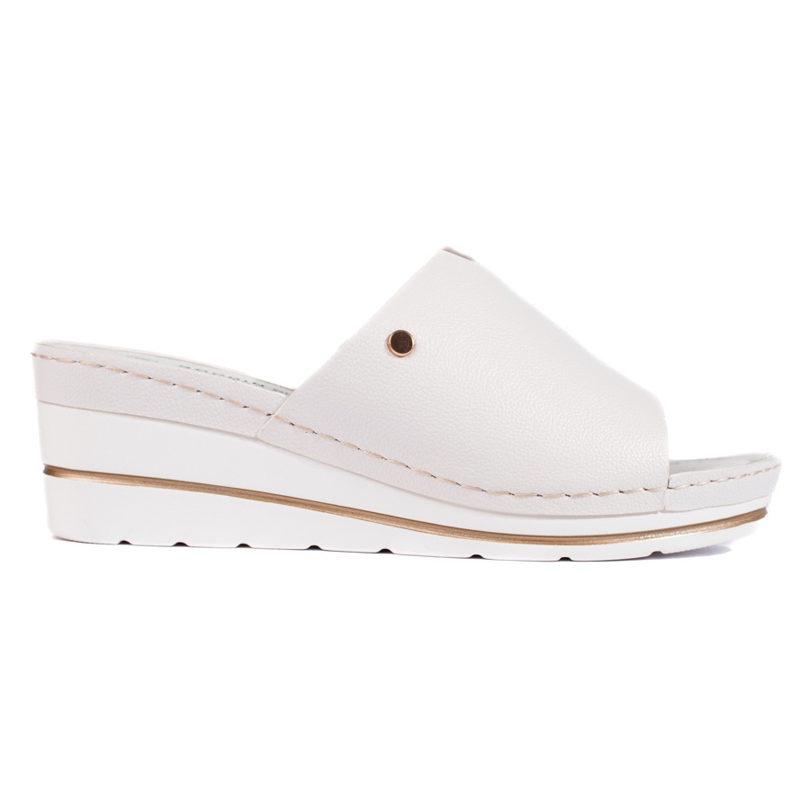 Entdecken Sie die perfekte Wahl im Frühjahr und Sommer - weiße Frauenkeile einer seriösen Marke. Diese modischen Flip -Flops sind eine perfekte Kombination aus Komfort und Eleganz, die in jeder täglichen Stylisierung funktioniert. Sie bestehen aus hochwertigem ökologischem Leder und gewährleisten die Haltbarkeit und Leichtigkeit in der Pflege, und deren leichte Plastik -Sohle garantiert den ganzen Tag den Komfort.