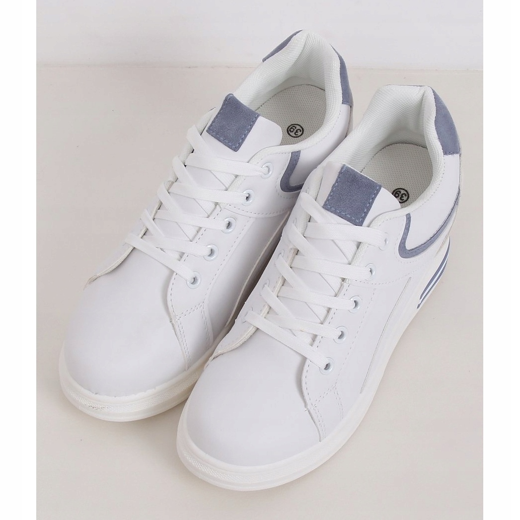 Inna marka Weiße BY-0370 WHITE / BLUE Sneakers auf einem versteckten Keil