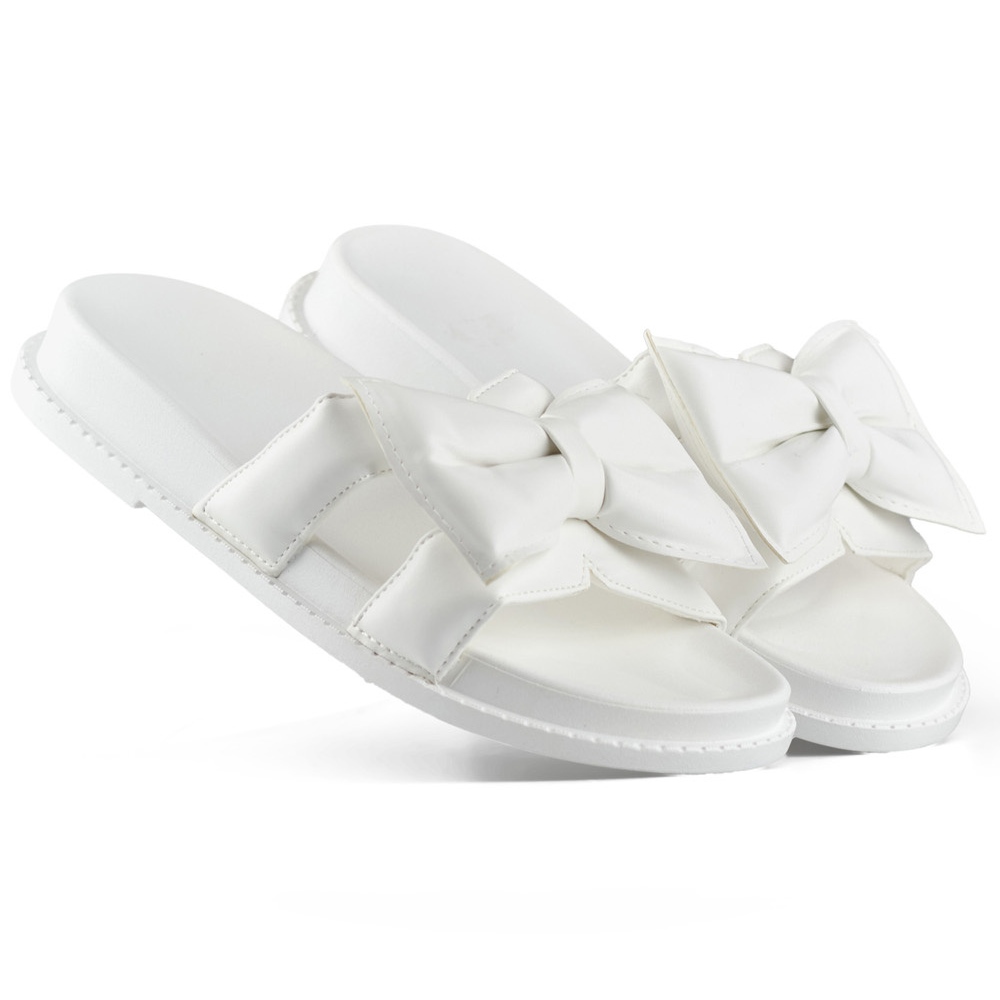 Inna marka Weiße Damen-Flip-Flops mit Schleife aus Öko-Leder