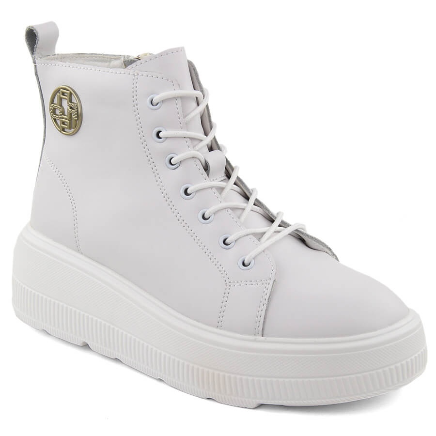 Details: Weiße Damen-Lederstiefeletten auf der Plattform von Filippo DBT6374
