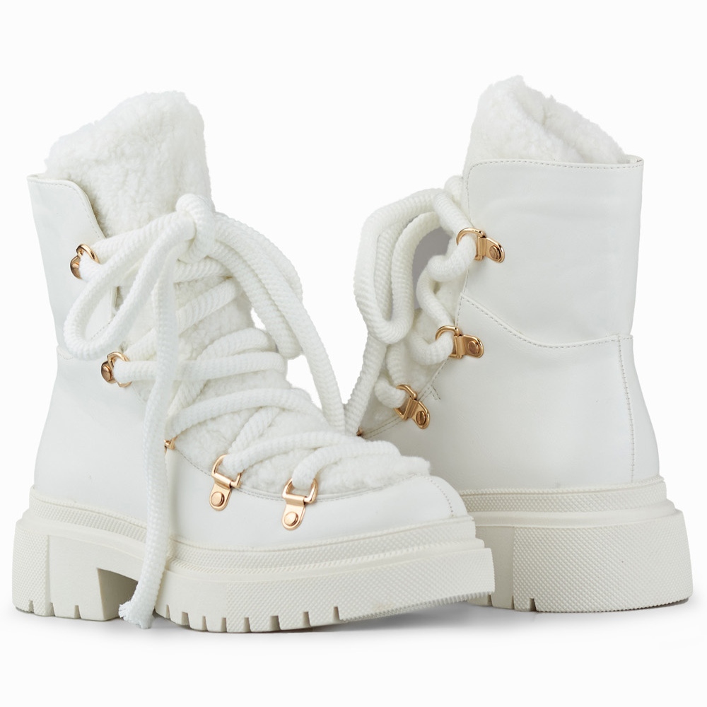 Details: Weiße Damen-Schneestiefel aus Fell