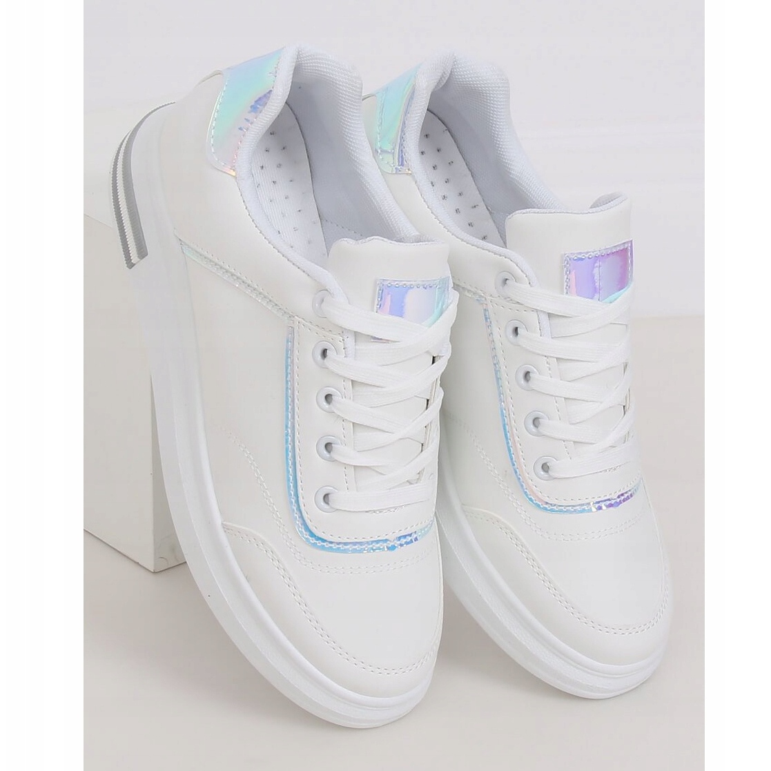 Aus hochwertigem ökologischem Leder gefertigt, überzeugen diese Sneaker mit holografischen Accessoires, die ihnen einen einzigartigen Charakter verleihen. Die Innenseite der Schuhe ist mit weichem Stoff überzogen, was ein angenehmes Tragegefühl auch über viele Stunden garantiert. Die runde Spitze und der klassische Schnürverschluss machen sie nicht nur modisch, sondern auch funktional.