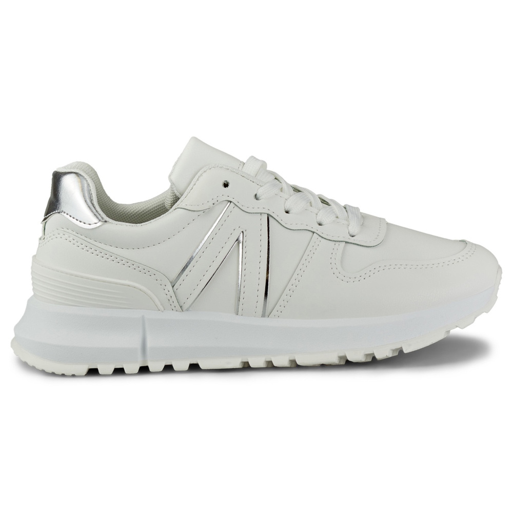 Inna marka Weiße Damen-Sneaker mit silbernem Besatz