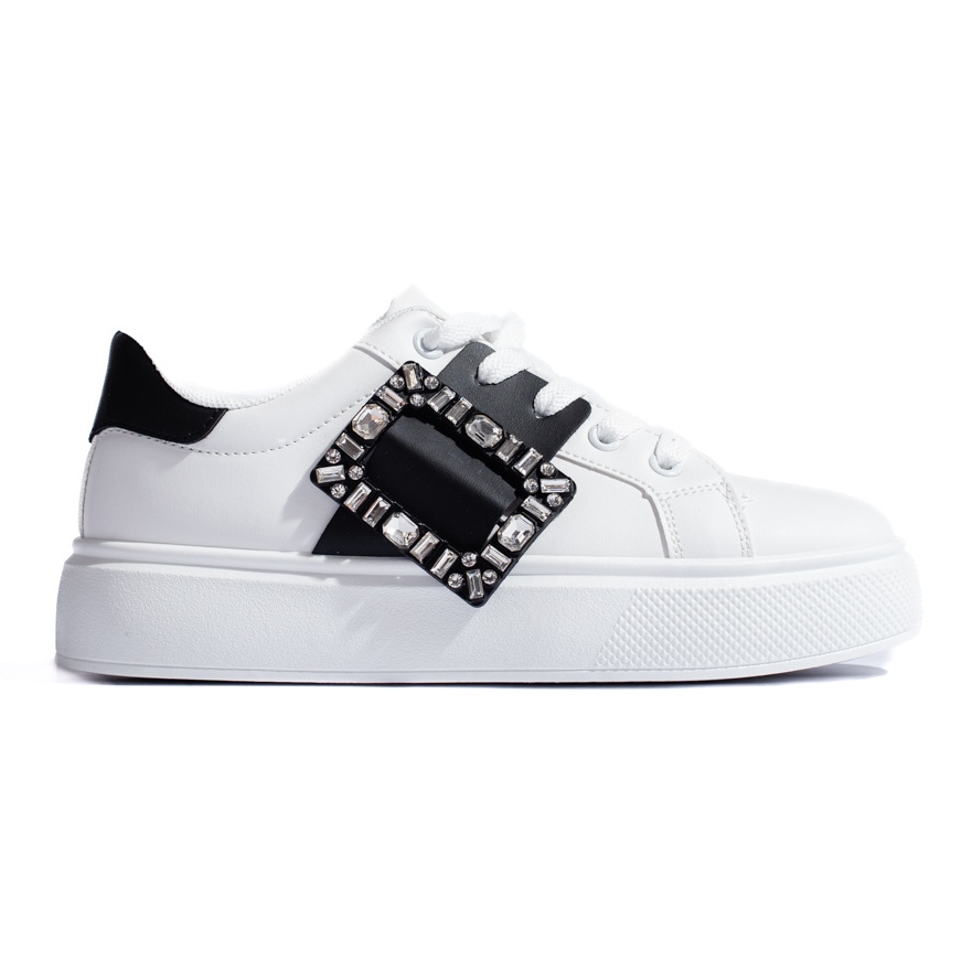 Ein zusätzlicher Vorteil dieses Modells sind dezente Strasssteine, die den Schuhen einen einzigartigen und stilvollen Look verleihen. Dank der neutralen Farbe – Weiß mit schwarzen Akzenten – passen diese Sneaker perfekt zu einer Vielzahl von Outfits, sowohl im Frühling und Sommer als auch an kühleren Herbst- und Wintertagen.