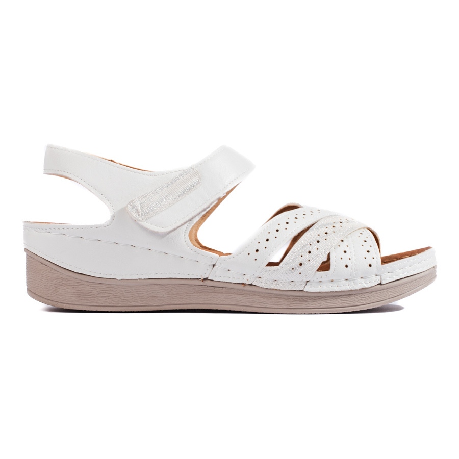 Inna marka Weiße Damensandalen mit Klettverschluss