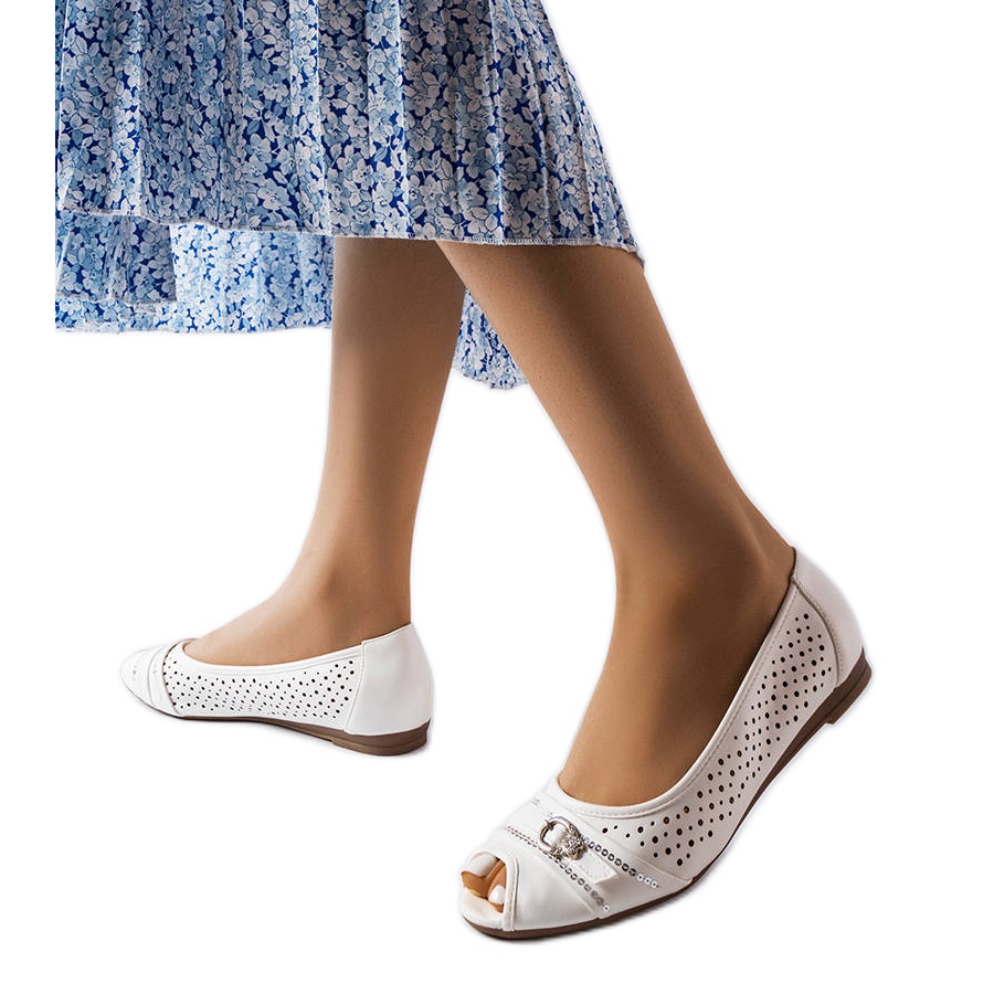 Details: Weiße durchbrochene Ballerinas mit Strasssteinen von Creek