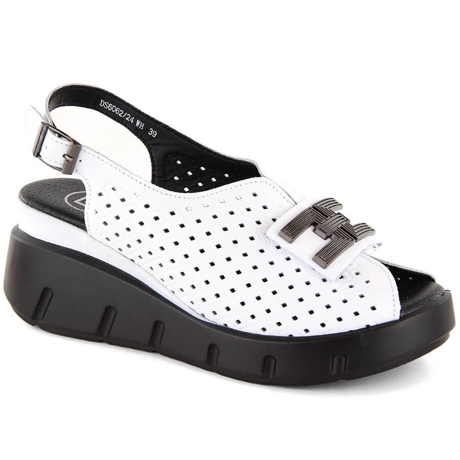 Details: Weiße durchbrochene Damen-Keilsandalen aus Leder Filippo DS6062