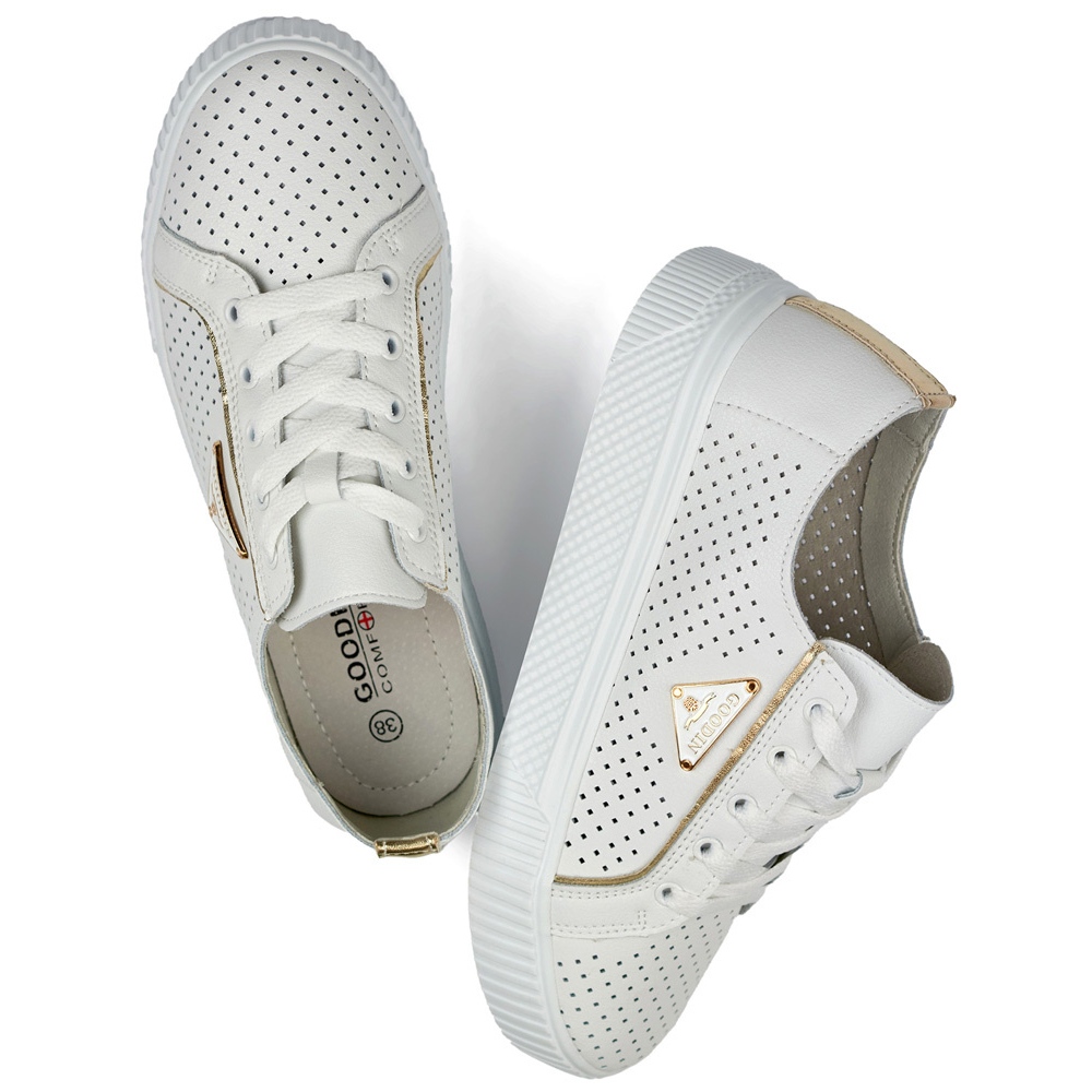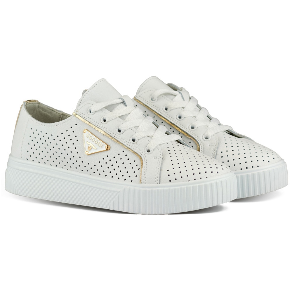 Details: Weiße durchbrochene Damen-Sportschuhe aus Naturleder