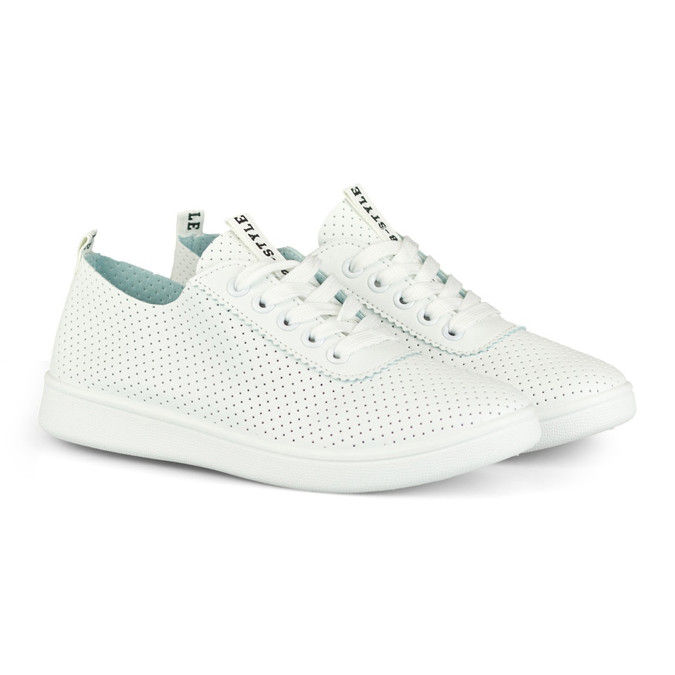Weiße, durchbrochene Bellis-Sneaker sind universelle Schuhe, die sich sowohl für Frühlingsspaziergänge als auch für Sommerabende eignen. Sie passen perfekt zu Jeans und Sommerkleidern und verleihen jedem Styling eine modische Note. Die runde Spitze und das niedrige Profil des Schuhs betonen die Zartheit des Damenfußes und verleihen ihm Leichtigkeit.