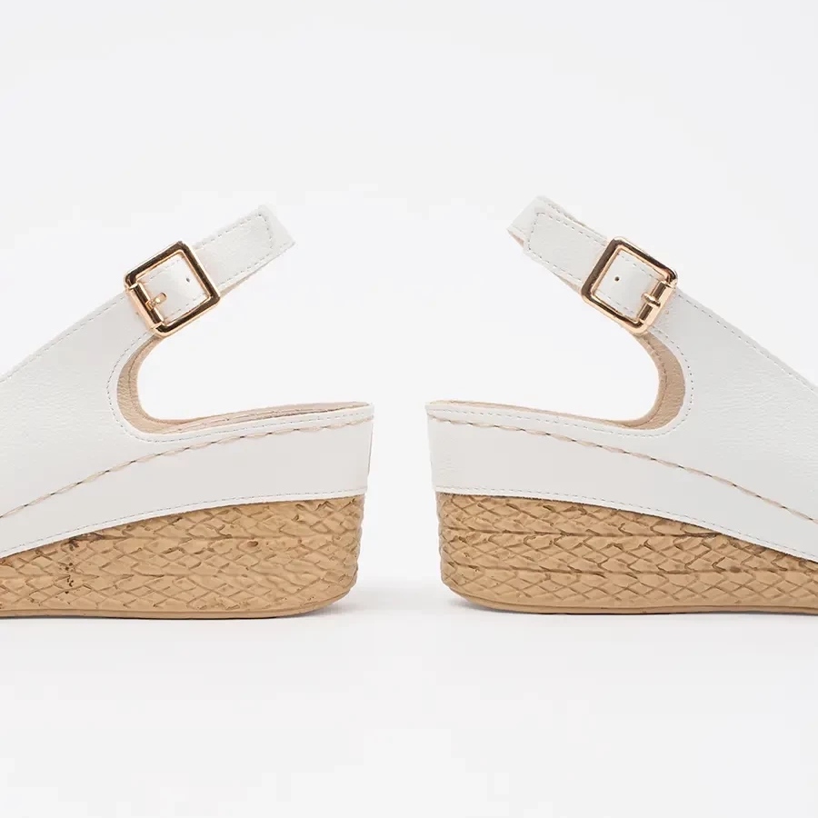Die offene Fersenkappe macht diese Sandalen luftig und bequem und macht sie zu einer tollen Wahl für warme Tage. Der klassische Schnitt der Espadrilles ohne Spitze sorgt für Leichtigkeit und durch die weiße Farbe passen sie sowohl zu alltäglichen als auch zu eleganteren Outfits perfekt. Die Sandalen haben einen eleganten, lässigen Stil, der sie zu einem universellen Accessoire für verschiedene Anlässe macht – von Partys bis hin zu Alltagsausflügen.