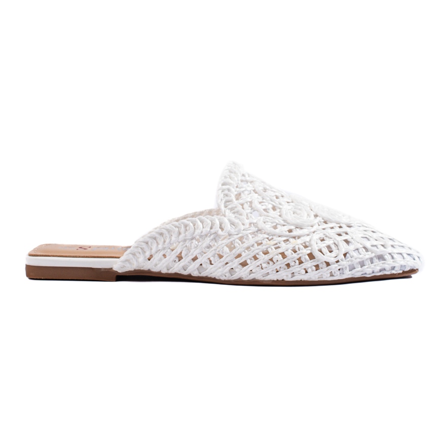 Weiße, flache Shelovet-Slides mit durchbrochenem Obermaterial – perfekt für Sommertage