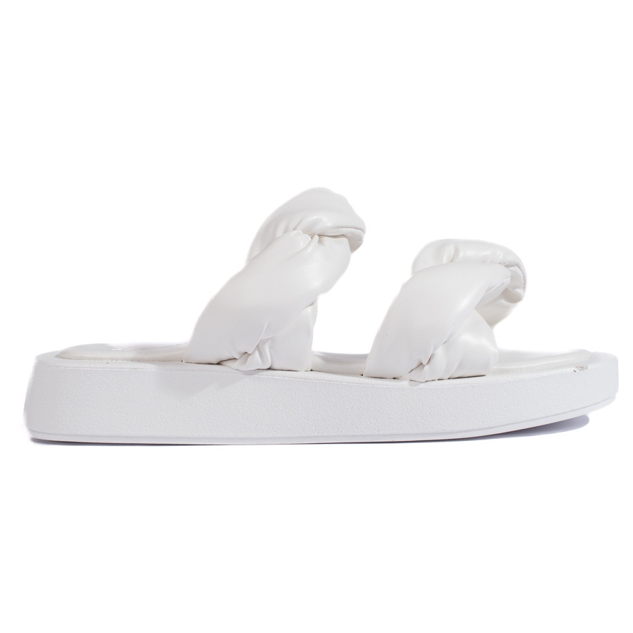 Wir präsentieren weiße Flip -Flops auf einer dicken Sohle eines seriösen Herstellers, einer anderen Marke, die perfekt für alltägliche Stilisationen eignet. Diese eleganten, hier ist ein erfrischender Ansatz für klassische Klappen, die Komfort mit einem Modeausdruck verbinden.