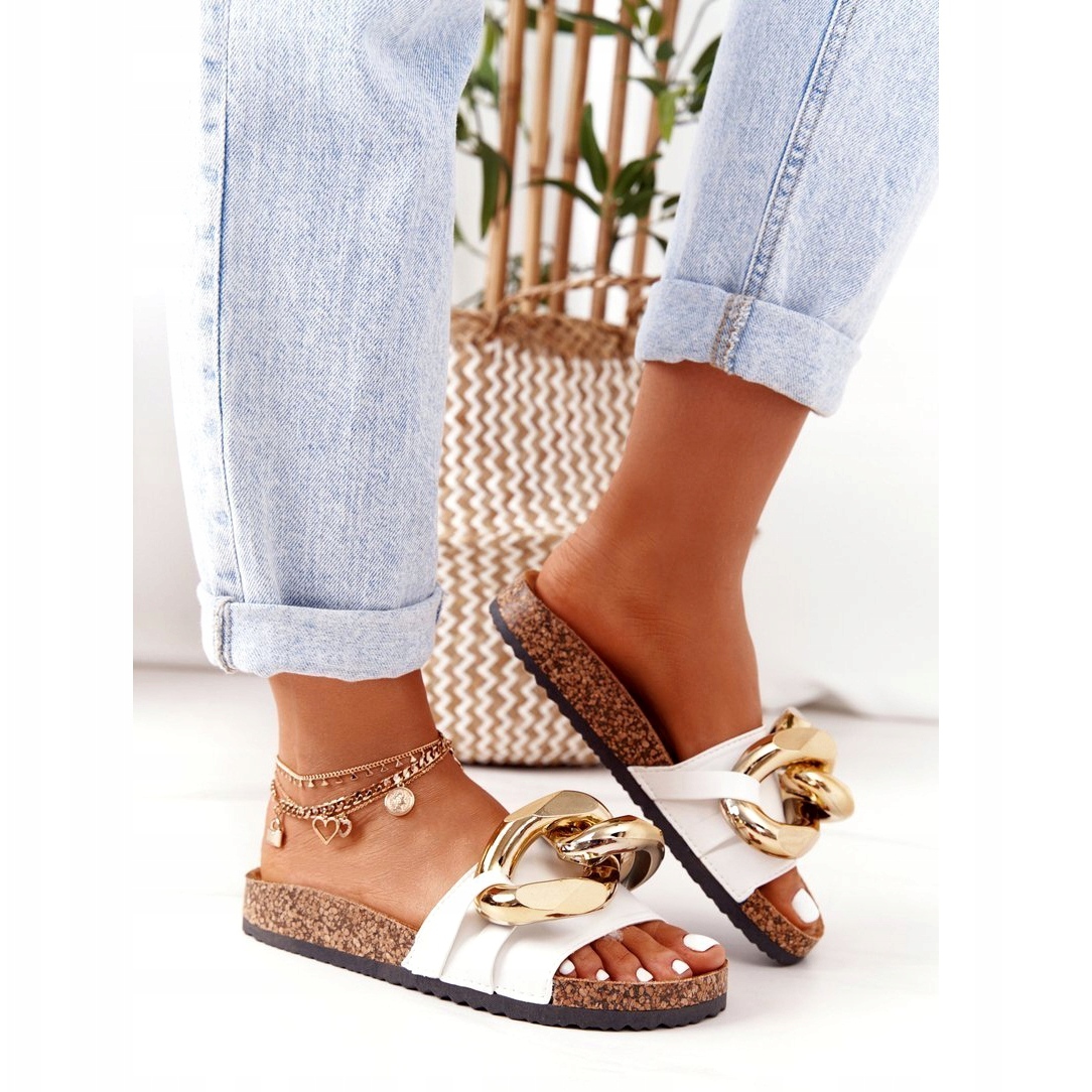 Details: PS1 Weiße Flip-Flops mit einem letzten Kettentanz golden